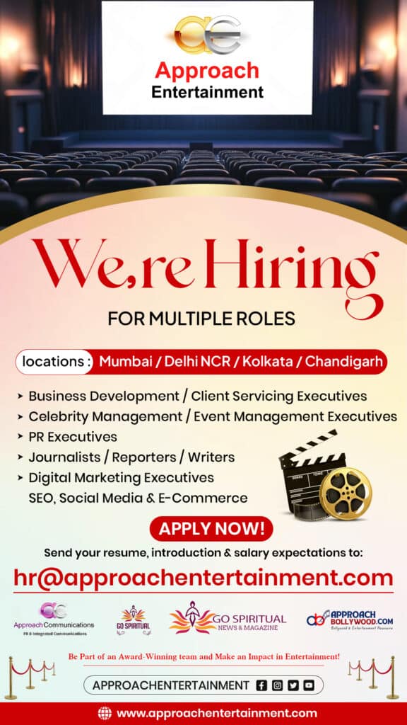 Approach Entertainment is an award-winning company specializing in Celebrity Management, Film Production, Advertising, Corporate Films, Film Marketing, Events, and Entertainment Marketing, with operations in Mumbai, New Delhi, Gurugram, Kolkata, Goa, Chandigarh, Dehradun, Hyderabad, and Ahmedabad. Its portfolio includes Approach Communications, Approach Bollywood, and Go Spiritual, a spiritual organization working for spirituality, philanthropy, social causes, mental health, wellness, spiritual tourism, media, and spiritual events.